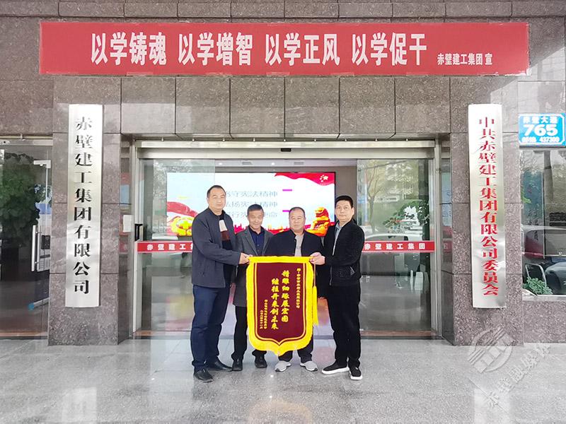 11月20日,神山鎮(zhèn)鐘鳴村村支書易正軍帶領(lǐng)村委會(huì)成員及村民代表,將一面寫著“精雕細(xì)琢展宏圖,繼往開來創(chuàng)未來”的錦旗送到赤壁建工集團(tuán),以表達(dá)他們對(duì)建工集團(tuán)水建公司在該村高標(biāo)準(zhǔn)農(nóng)田改造工作中,所付出的辛勤勞動(dòng)的感謝之情。