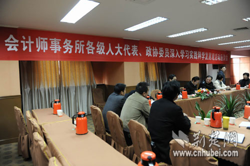 11月14日下午,省注冊(cè)會(huì)計(jì)師行業(yè)黨委在武昌財(cái)苑大廈召開(kāi)了全省注冊(cè)會(huì)計(jì)師行業(yè)各級(jí)人大代表、政協(xié)委員深入學(xué)習(xí)實(shí)踐科學(xué)發(fā)展觀(guān)活動(dòng)座談會(huì)。來(lái)自全省各地的16位各級(jí)人大代表、政協(xié)委員齊聚一堂,為深入學(xué)習(xí)實(shí)踐科學(xué)發(fā)展觀(guān)活動(dòng)建言獻(xiàn)策,回顧二十年來(lái)注冊(cè)會(huì)計(jì)師行業(yè)黨建工作的發(fā)展歷程,展望會(huì)計(jì)師事務(wù)所行業(yè)的美好未來(lái)。