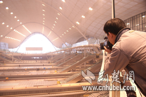 荊楚網(wǎng)消息(記者高霞、艾凌璐 攝影記者王唯翀)12月10日早上7時30分,湖北日報、湖北電視臺、湖北人民廣播電臺、荊楚網(wǎng)等四十家來自中央駐漢、湖北省級及地市媒體一行開始武廣體驗(yàn)之旅。動車組9時52分發(fā)車,12時42分到達(dá)終點(diǎn)站廣州北。由于位于番禺的廣州南站未能及時建成,位于花都的廣州北站成為武廣客運(yùn)專線的臨時始發(fā)站和終點(diǎn)站。