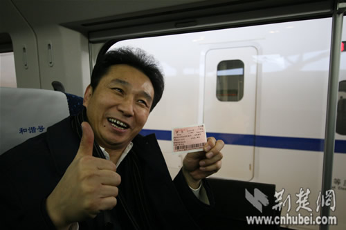 荊楚網(wǎng)消息(記者姚啟慧)26日上午9時,武廣高鐵發(fā)出首趟列車,不少武漢游客專門前來體驗,在3號車廂,記者遇到了武漢著名“笑星”田克兢。他坦言,乘高鐵體驗既驚又喜,今后要把這次經(jīng)歷融入自己作品中。