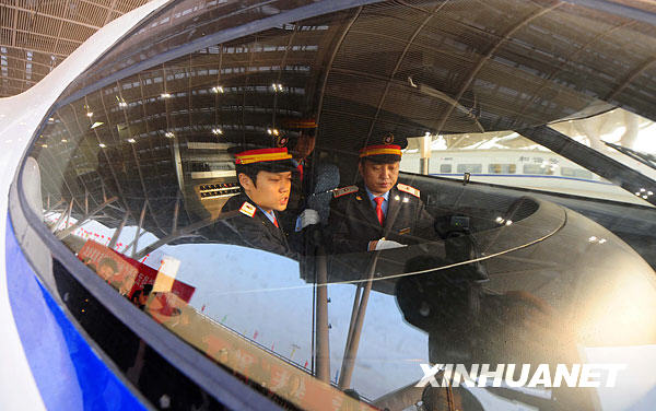 12月26日,首次武漢至廣州高速動(dòng)車司機(jī)正在駕駛室準(zhǔn)備。新華社記者 程敏 攝