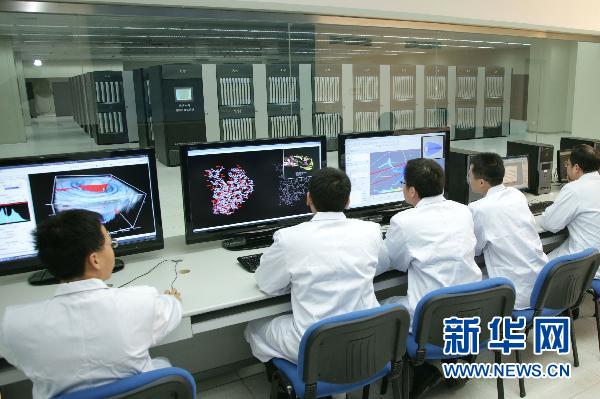 這是科研人員在對“天河一號”超級計(jì)算機(jī)進(jìn)行系統(tǒng)性能測試(資料照片)。 新華社發(fā) (何書遠(yuǎn) 攝)
