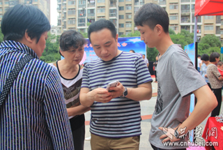 工作人員協(xié)助居民訂閱湖北手機(jī)報