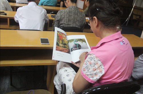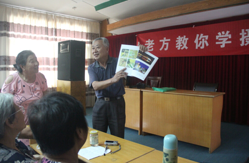 8月2日下午,在經(jīng)過半天休整之后,方老師開始為團(tuán)員們講課!拔覀兝夏耆藨(yīng)該有自己的興趣和追求,要學(xué)會自己找樂!薄艾F(xiàn)在小孩都是老年人在帶,我們學(xué)會了攝影就可以教孩子,對他們將來也有好處!狈嚼蠋煹囊幌,頓時就讓許多團(tuán)員萌生了學(xué)攝影的想法。接著,他向團(tuán)員們展示了自己拍攝的眾多精彩照片,并拿出一本攝影圖集供大家傳閱。“這本圖集里,都是我在老年大學(xué)教書時,學(xué)員們拍的照片。最大的學(xué)員都80多歲了,但是照片拍的特別好。相信大家通過學(xué)習(xí),也可以拍的如此精彩!狈嚼蠋煹脑,給了在座的老人極大的信心,大家也學(xué)的更加認(rèn)真。